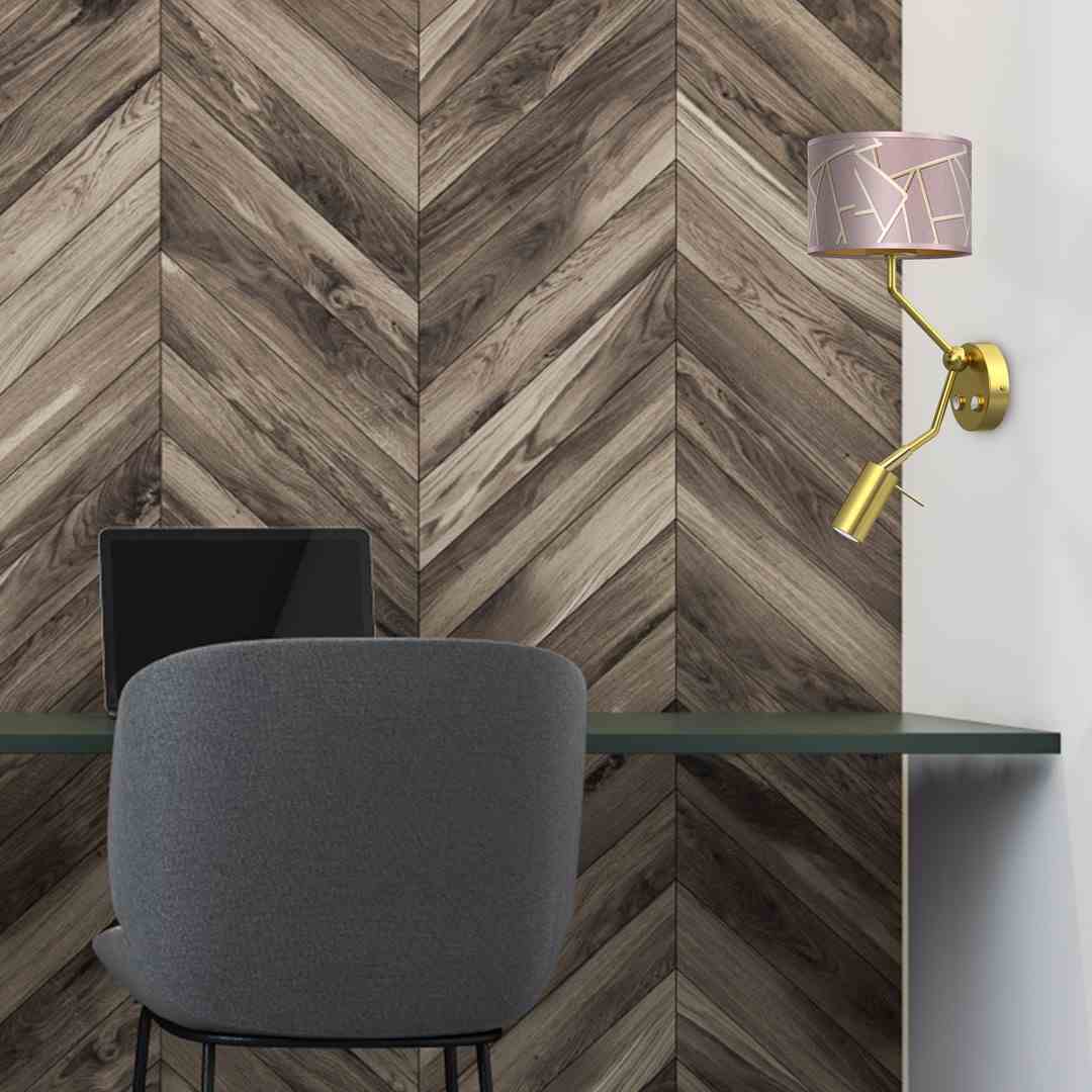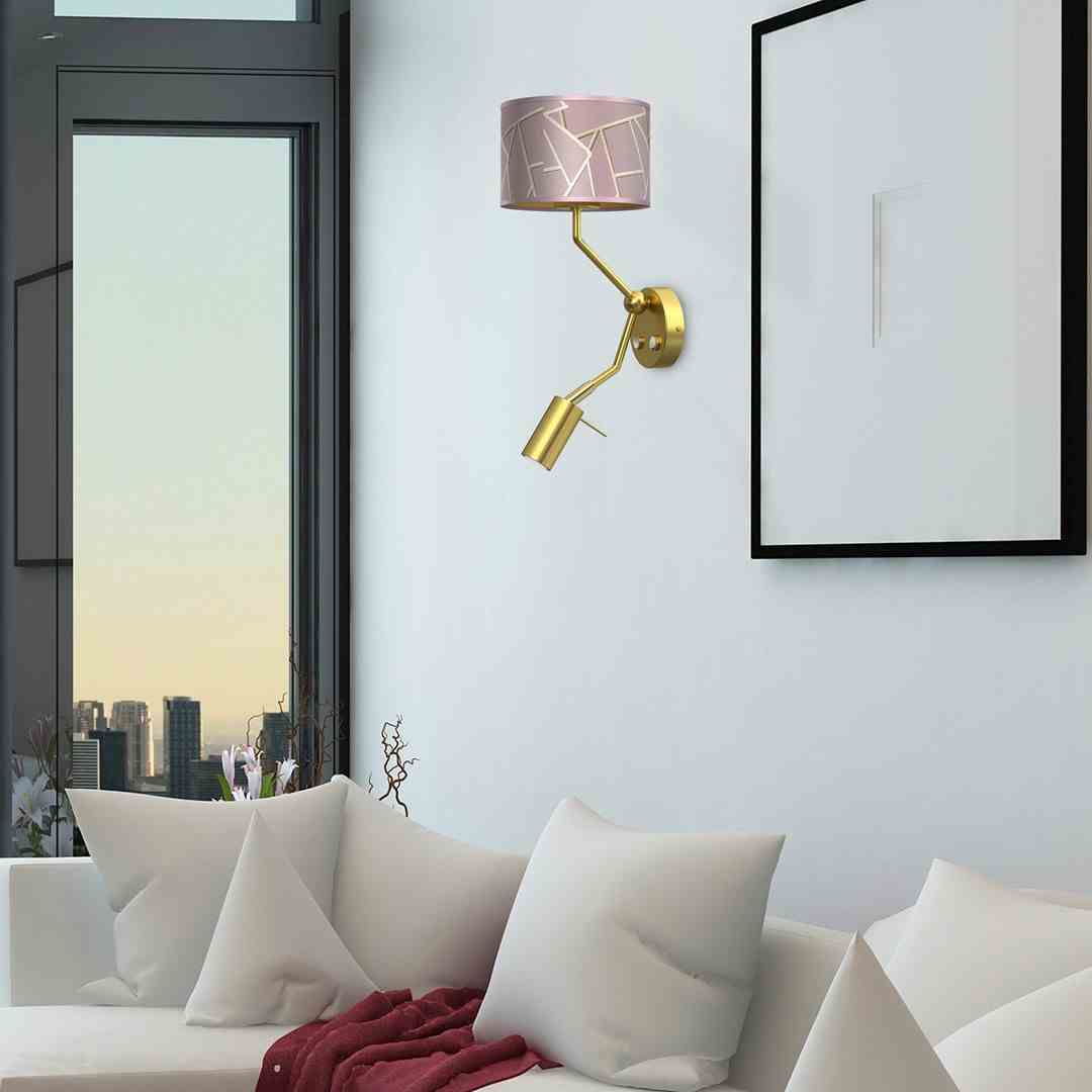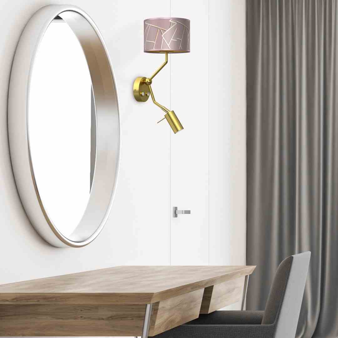 Złoty kinkiet do sypialni z różowym abażurem ZIGGY z wyłącznikiem