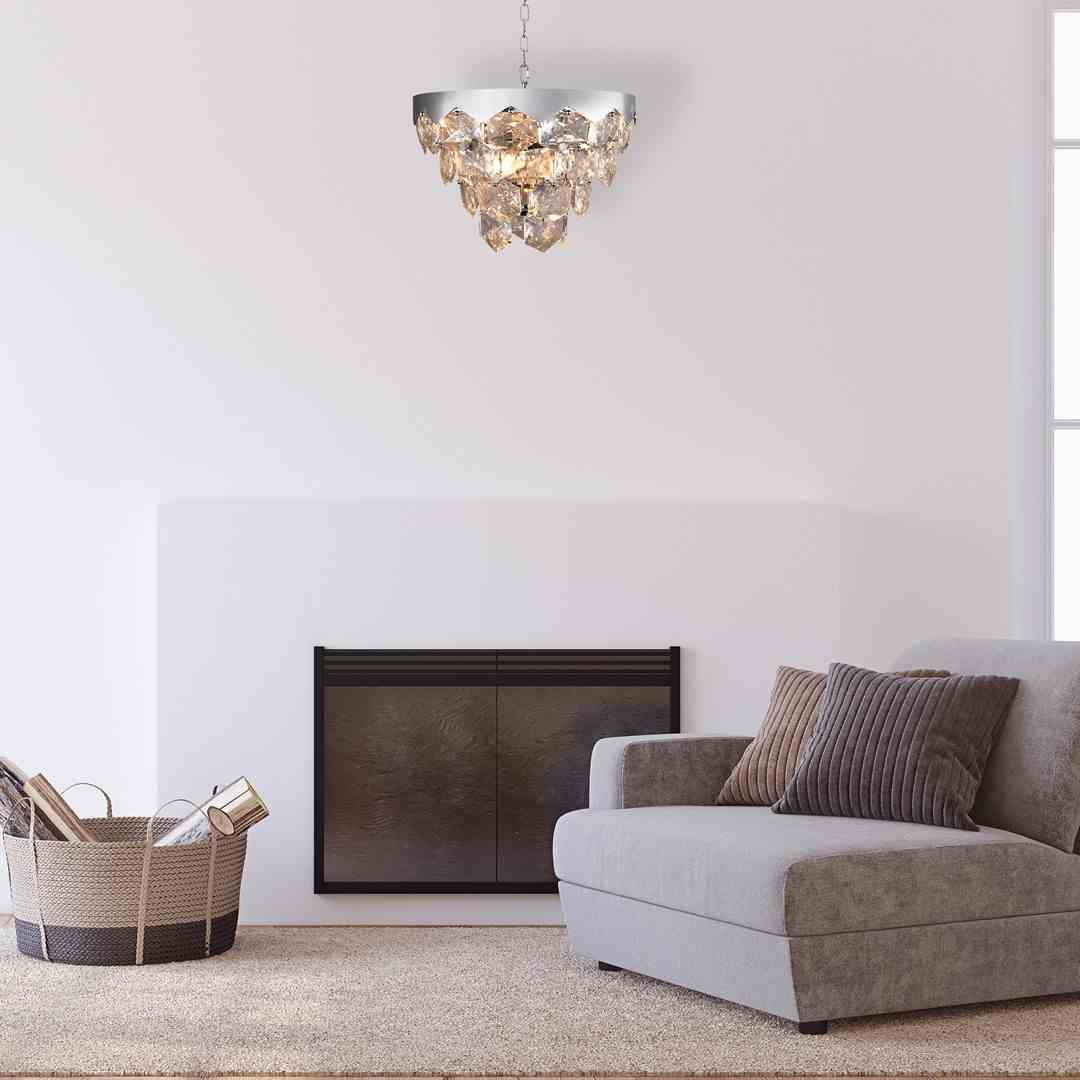 Pięknie zdobiony żyrandol, który zachwyca bogactwem detali, doskonale sprawdzi się w przestrzennych pomieszczeniach utrzymanych w stylu glamour czy art deco. Połączenie trwałego metalu i zjawiskowego kryształu sprawia, że lampa jest zarówno praktyczna, jak i dekoracyjna. Światło odbijające się od kryształów tworzy niesamowity efekt, który ożywi każde wnętrze.