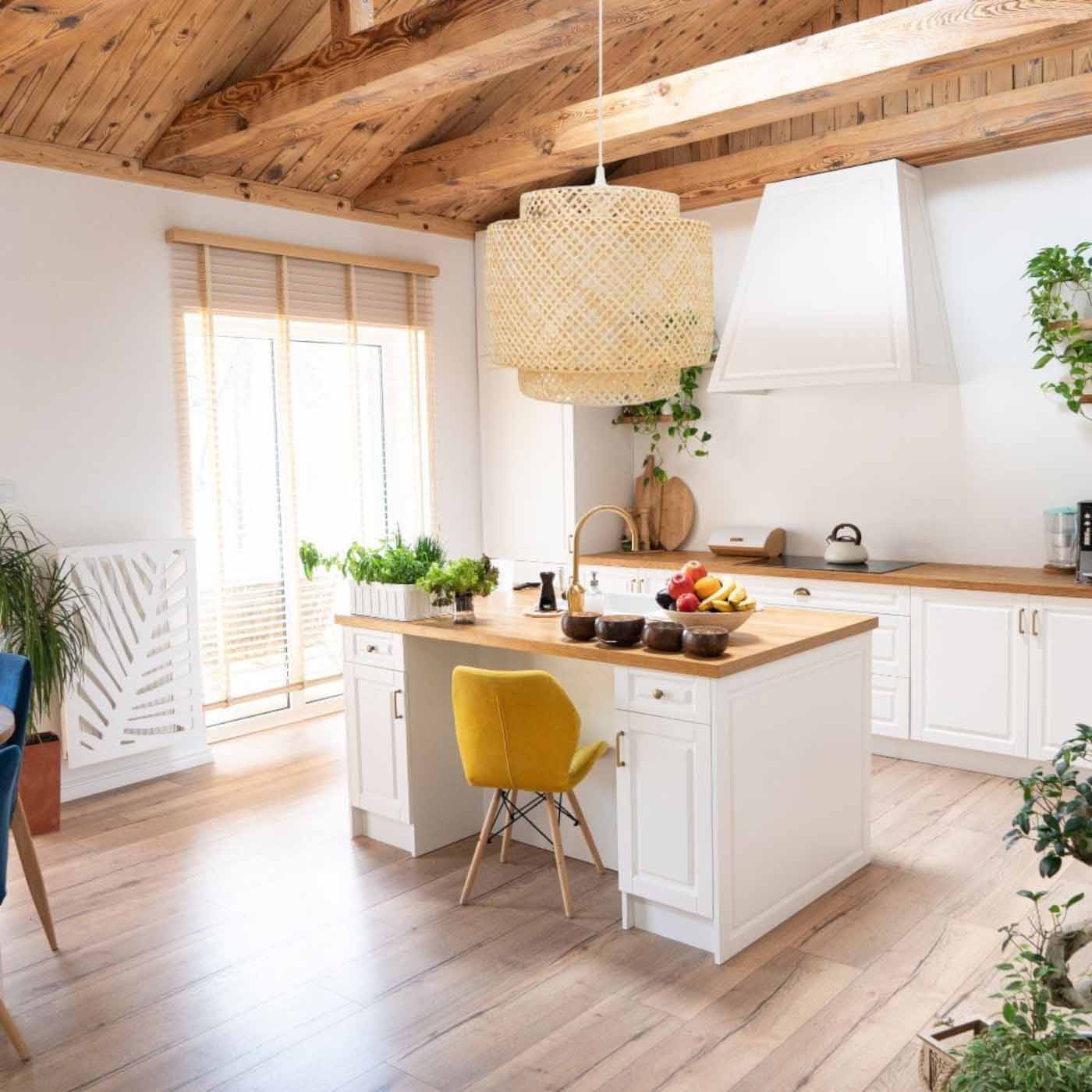 Żyrandol naturalny z bambusa 50cm TH06L 1xE27 biała podsufitka
