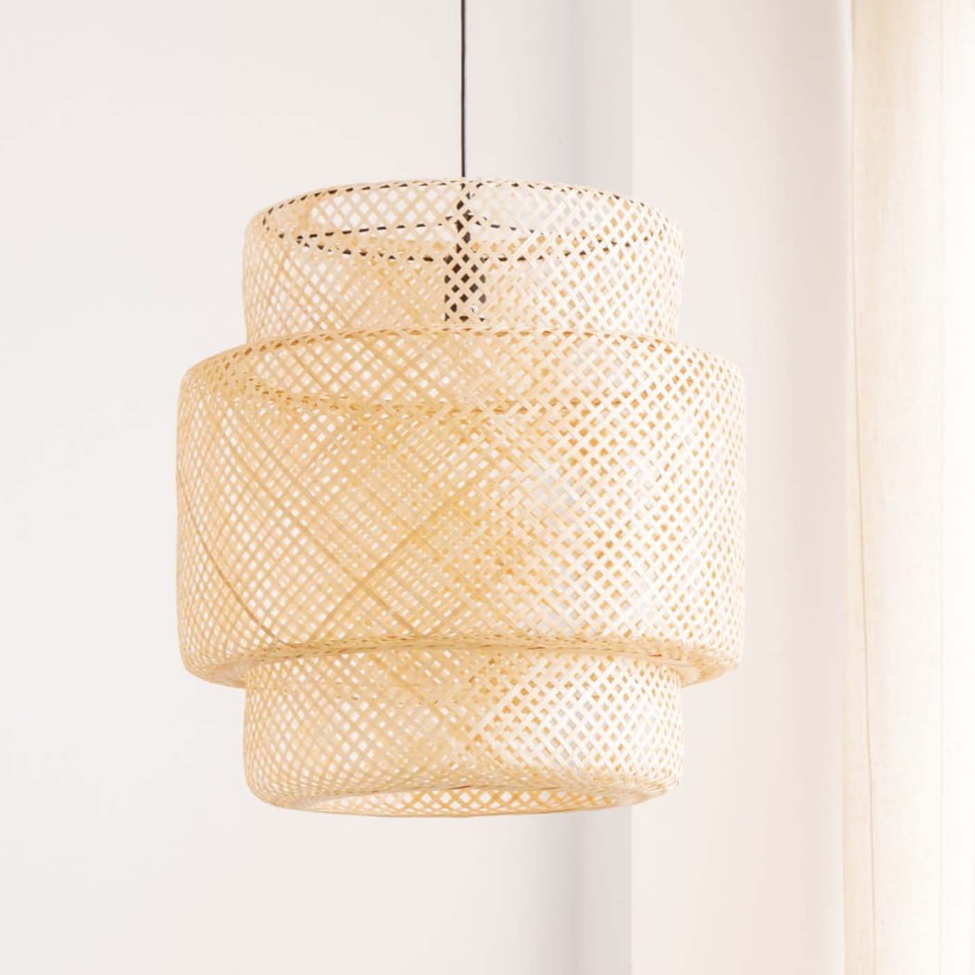 Żyrandol naturalny z bambusa 50cm TH06L 1xE27 biała podsufitka Lampa wisząca z bambusowej plecionki 40cm 1x E27