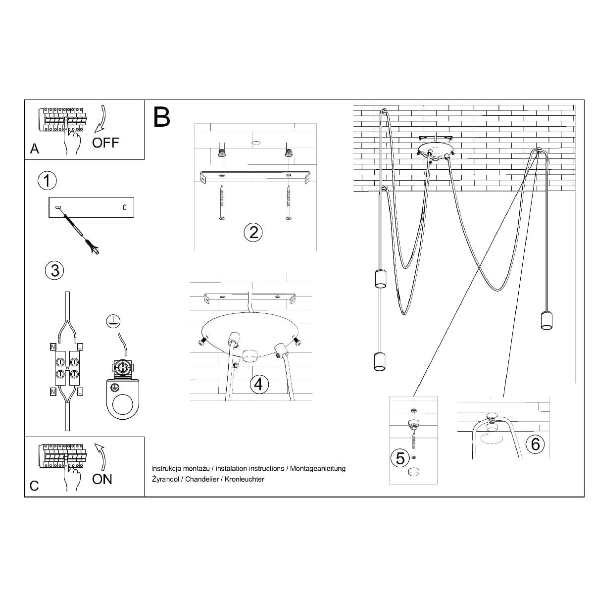 Żyrandol pająk czarny EDISON 3 ramiona 3xE27 Żarówka LED E27 7.5W 3000K ciepła SOLLUX