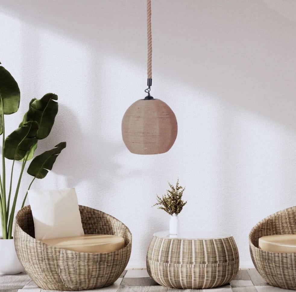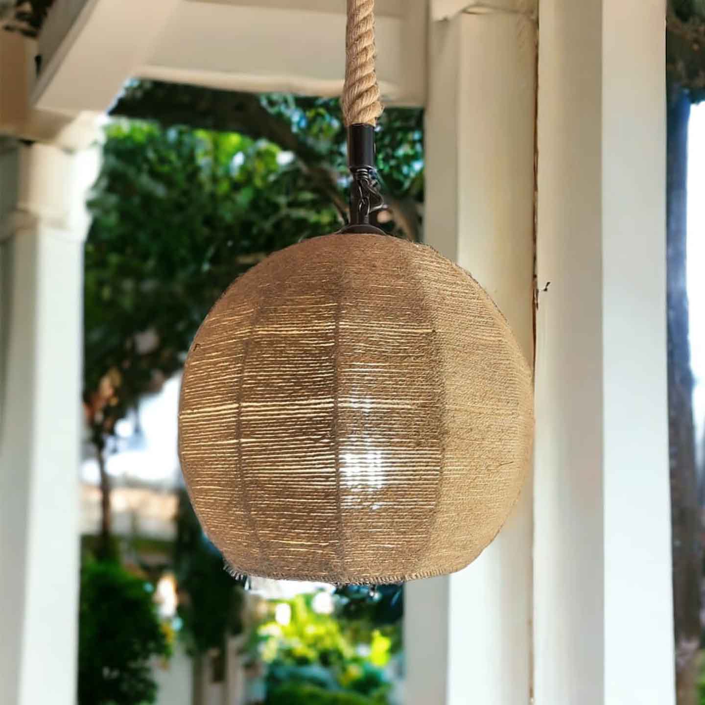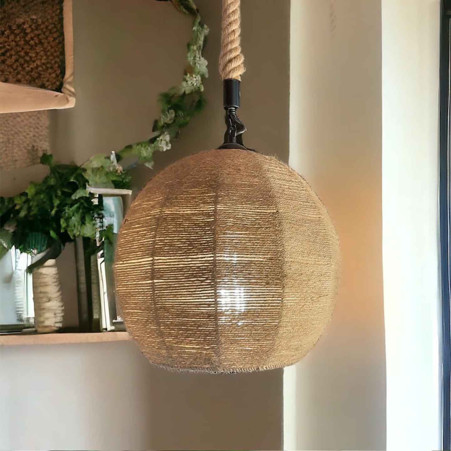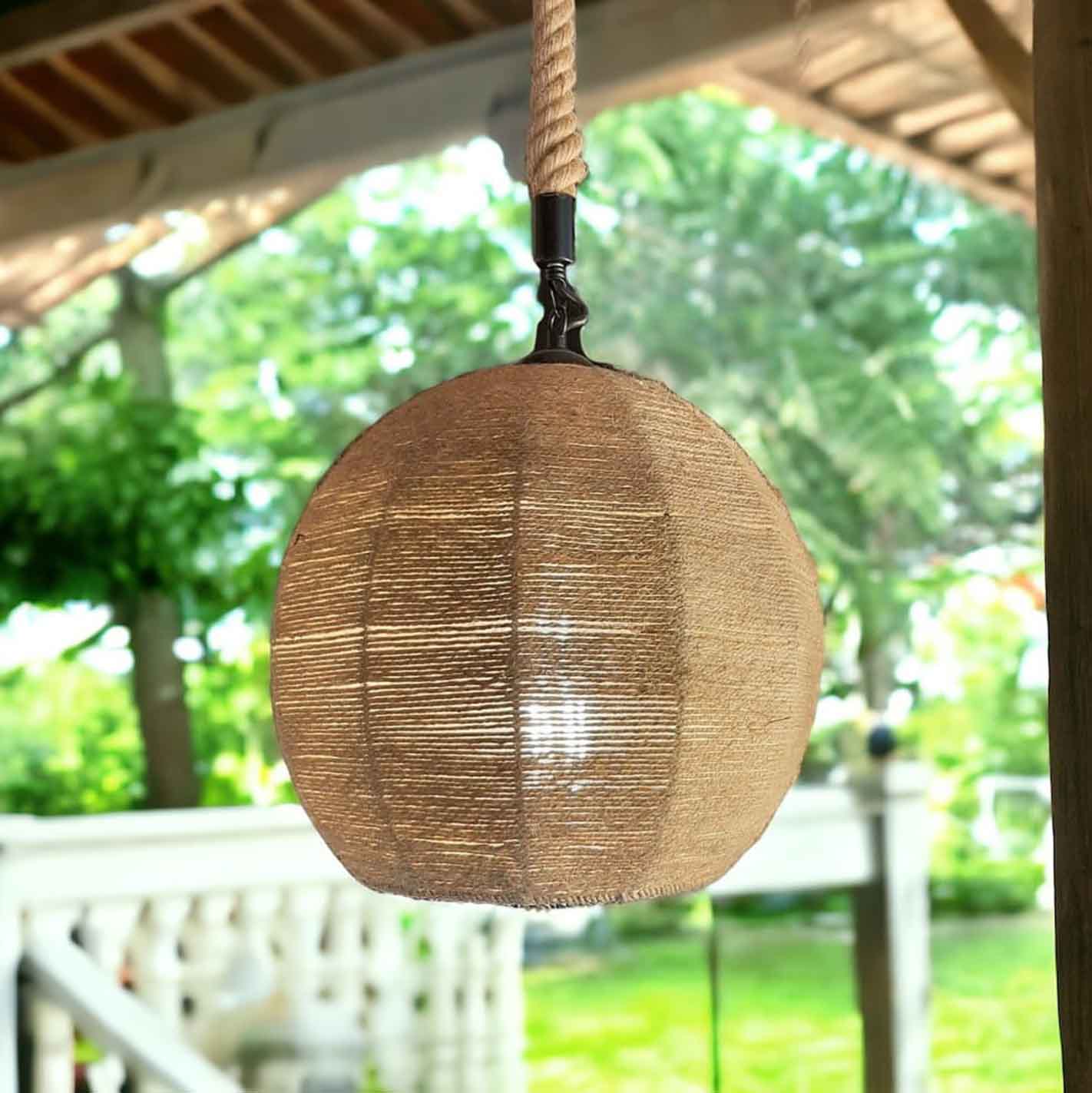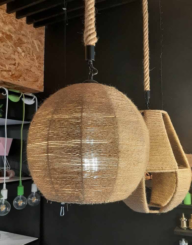 Choć solidnie wykonany, żyrandol jest zaskakująco lekki i łatwy do zawieszenia. Używamy do tego oryginalnej, grubej liny jutowej, co dodaje całości naturalnego, surowego wyglądu. Dodatkowo, regulowanie wysokości lampy to czysta przyjemność - wystarczy zawiązać splot na linie, a lampa uniesie się wyżej, dodając tym samym do swojej oryginalnej estetyki.
